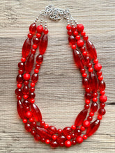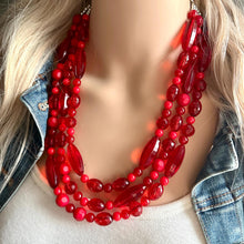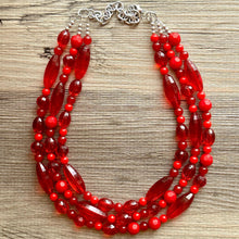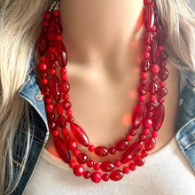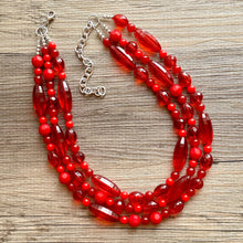 A great statement piece! Three layers of acrylic beads in shades of red.