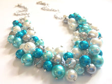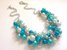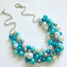 Order 1, 2, or all 3 pieces of this beautiful set! Made of high quality, glass and acrylic pearls and crystals. A rich blend of robins egg blue, teal, gray, and white beads in different sizes and textures.
