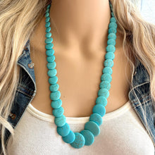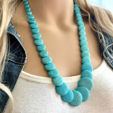 A great statement piece! Made with vintage pieces. 21.5” end to end of beads with an extra 4” extender chain. Stone beads make this a closet staple “throw on and go” long necklace!