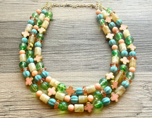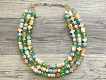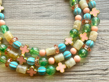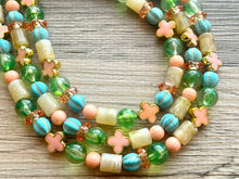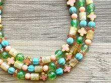 Triple strand chunky necklace makes a great statement piece! This color combination is really special and unique, handmade with glass and acrylic beads.
