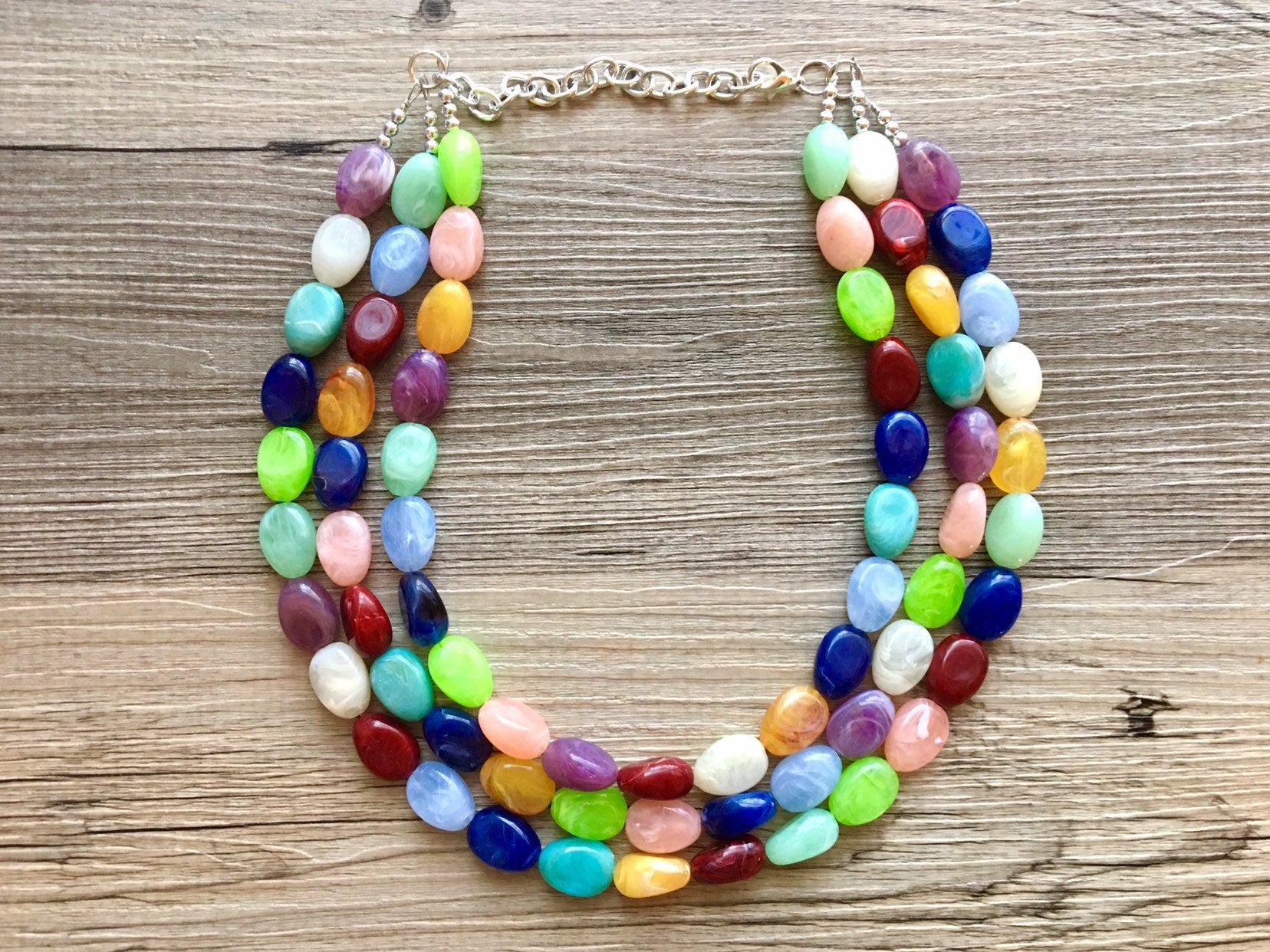 Color block beaded necklace in rainbow colors. Silver finishing.