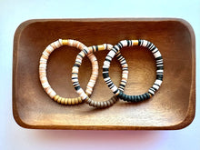 Vacation Bracelet Set, Brown Tan White Holiday Jewelry, Tropical Black Gift Arm Candy Present, stocking stuffer clay stretch friendship