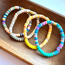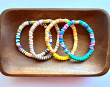 Set of four stretch bracelets in complimenting colors. All bracelets are made “one size fits most”.