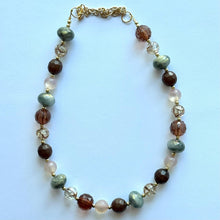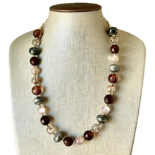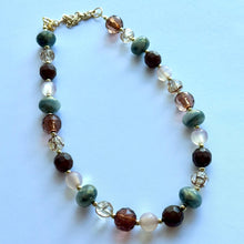 Beautiful resin beads that have collided with a gold shiny linked chain.